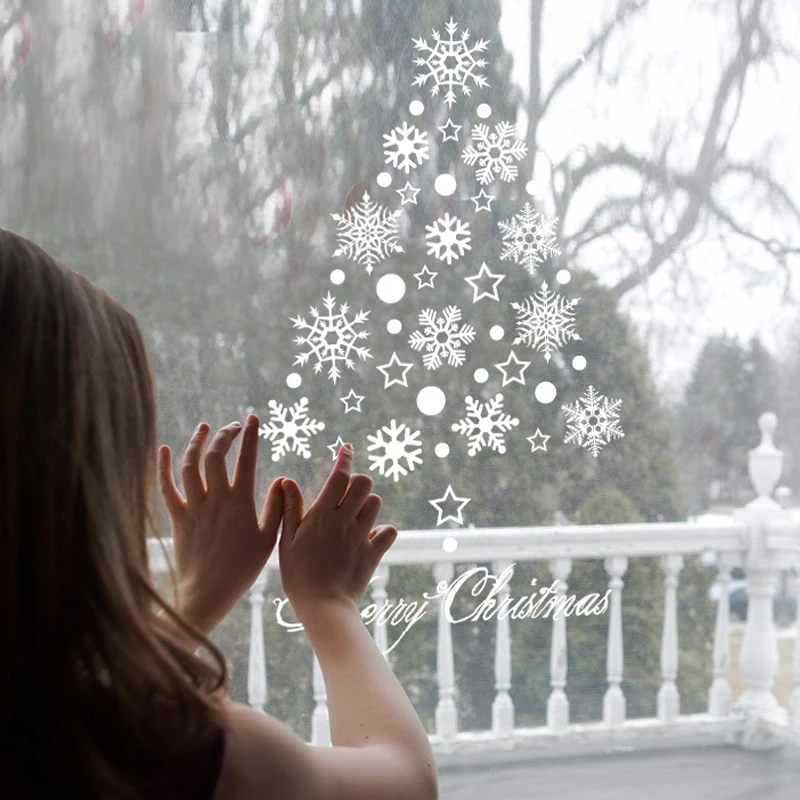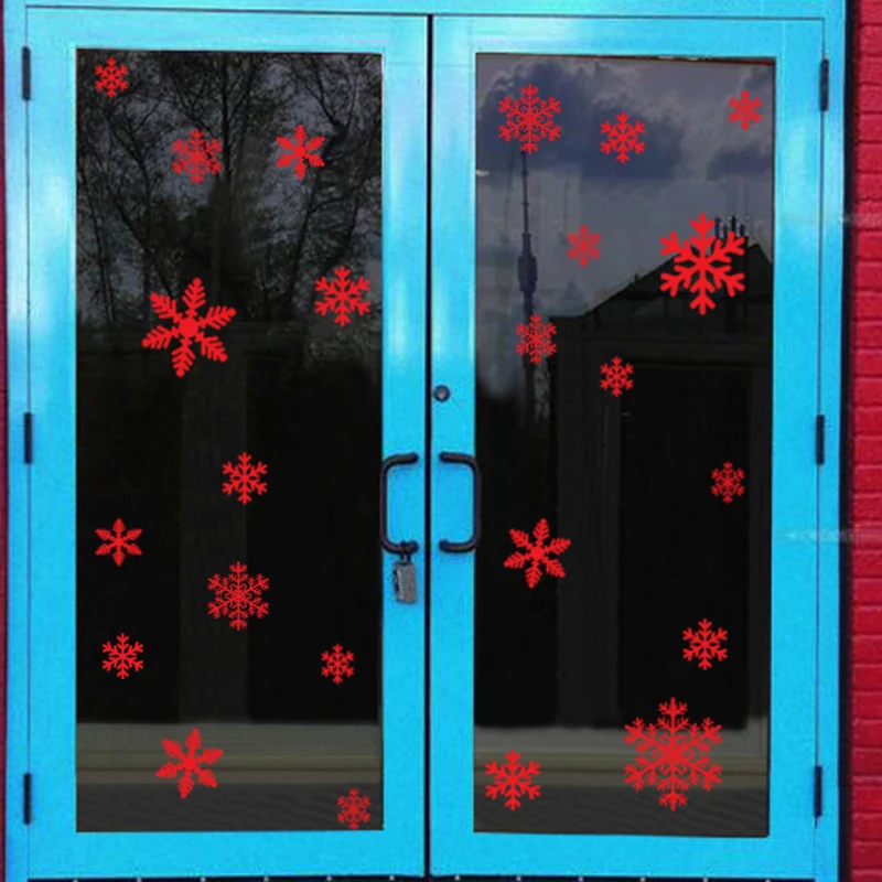 Условия: 100% новый и высокое качество Материал: ПВХ Использование: Рождество, Новый год Размер: 35 см X 50 см/13,7 "X 19,7" Цвет: белый/красный, вы можете выбрать Стиль: снежинки Посылка включает в себя: 1 набор наклейки снежинки (27 шт снежинки)