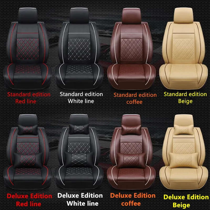 Материал: кожа (ПУ) Цвет: кофейный/черный/белый/черный/красный/бежевый/синий Посылка: 1 шт. стандартная версия: 1Передние сиденья,Без подушки заднего сиденья 2 шт. стандартная версия: 2Передние сиденья,Без подушки заднего сиденья 2PC Deluxe Edition:2Передние сиденья + 2 подушки + 2Поясничная Подушка, без подушки заднего сиденья. Только заднее сиденье: только заднее сиденье, нетПередние сиденья, без подушки, без поясничной подушки.Примечание: Для 100% автомобилей Размер заднего сиденья можно отрегулировать от 120 до 145 см. Размер изображения только для справки.