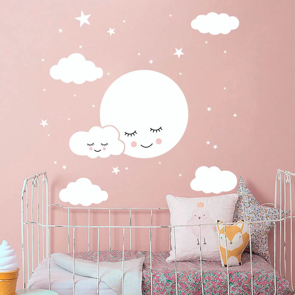 Мультфильм Луна Звезда облако стикер стены съемные детские комнаты Настенные наклейки домашний декор